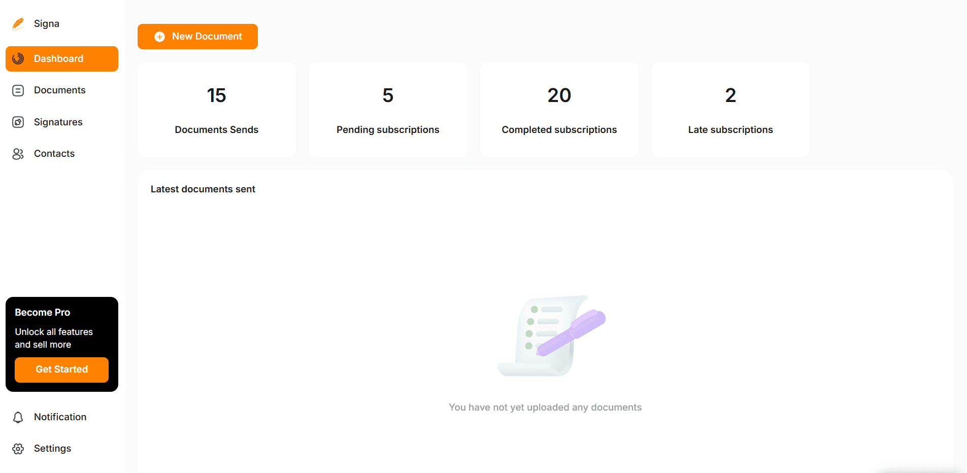 From freelancers to teams, Signa gives you all the tools to create, send, and track documents without the complexity